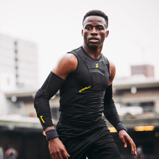 Armoured with 10mm XRD® Extreme Impact Protection elbow padding (5mm base + an additional 5mm in the centre of the elbow) that protects you from turf burn and reduces the risk of injuries by absorbing up to 90% of impact.