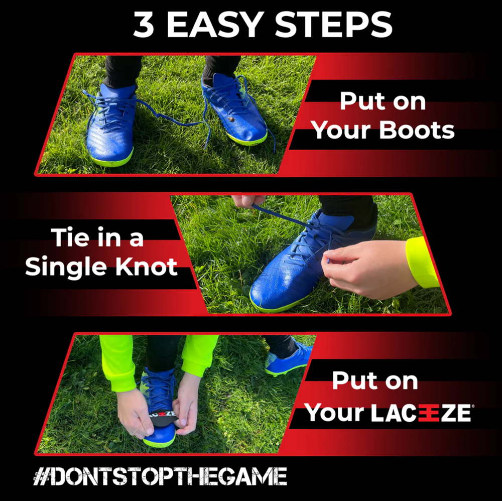 For best results, single knot your shoelace then place your Laceeze around your boot ensuring the widest part of the band covers your lace knot. This will ensure the laces don’t come undone.